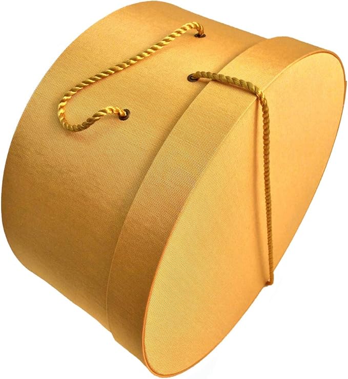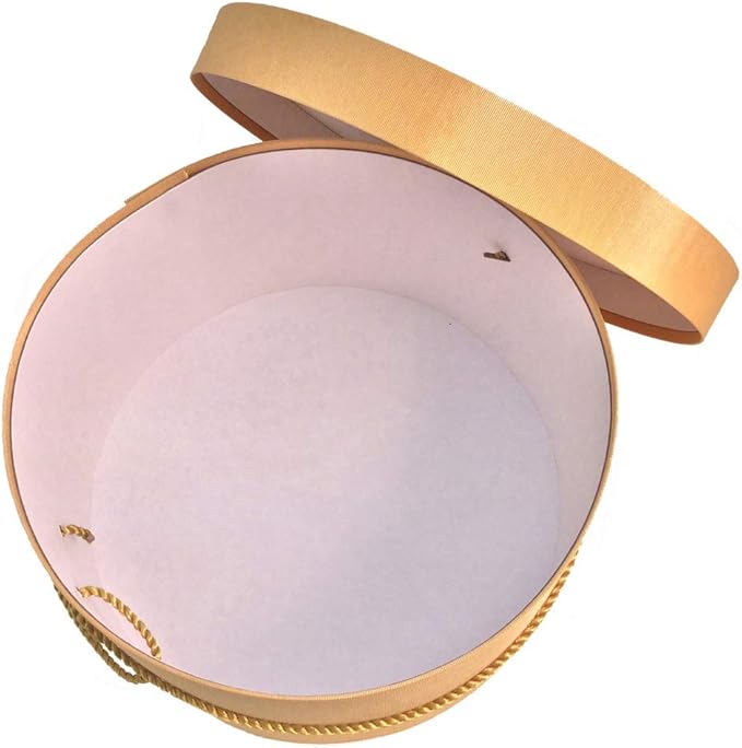 Sarah's Hat Boxes Classic Gold Hat Box โ 18.5" x 9.5" (Dia. x Ht.) Handmade in USA โ Odorless Non-Toxic Adhesive, Cording Handle โ Premium Storage for Hats & Accessories