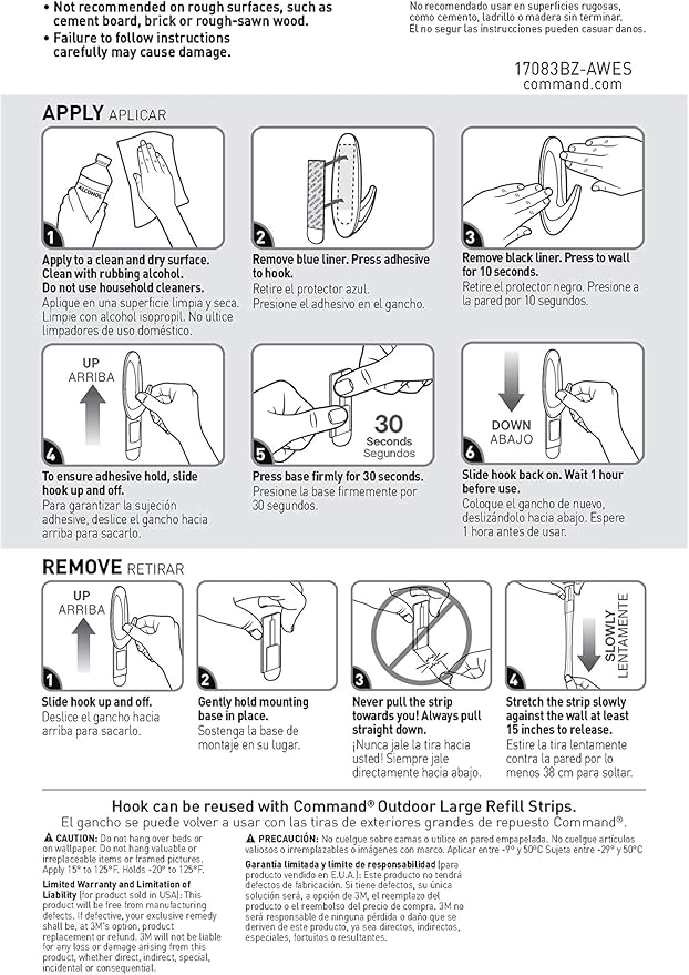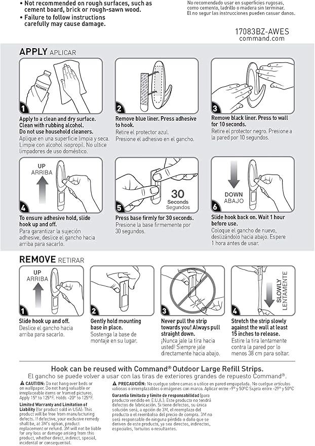 - DAMAGE-FREE HANGING- Say goodbye to holes, marks, or sticky residue on your walls, doors, trim, or siding; 3M hooks for hanging are easy to use and help keep your walls looking beautiful