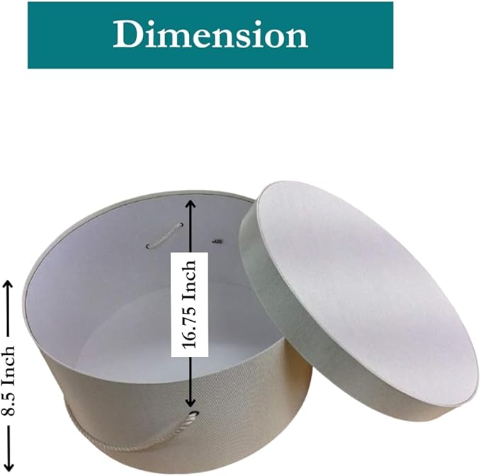 Sarah's Hat Boxes Classic Ivory Hat Box โ 16.75" x 8.5" (Dia. x Ht.) Handmade in USA โ Odorless Non-Toxic Adhesive, Cording Handle โ Premium Storage for Hats & Accessories