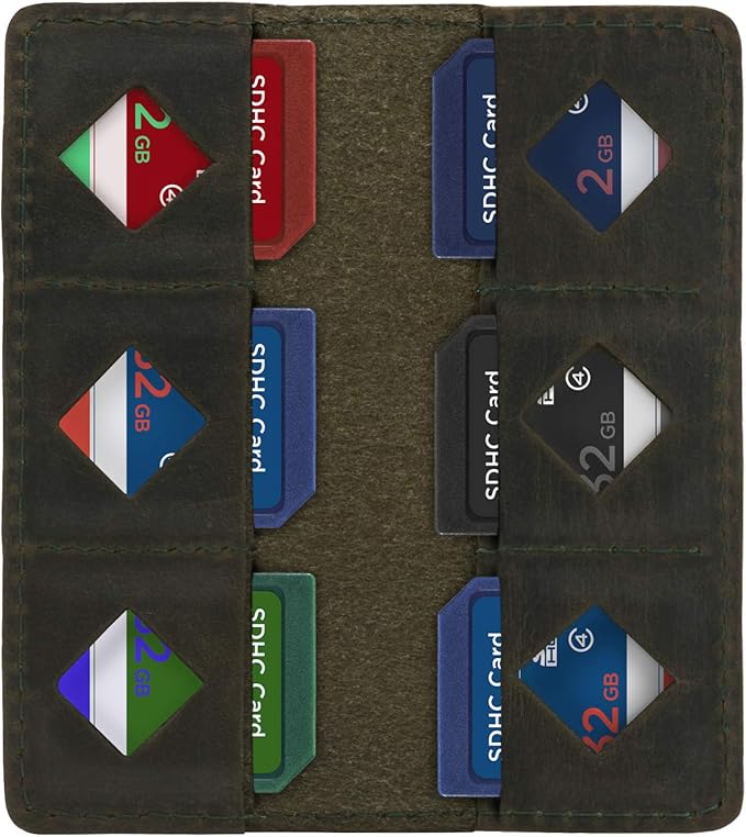 - Size - The MegaGear leather SD card holder has 12 pockets to store all your SD cards.