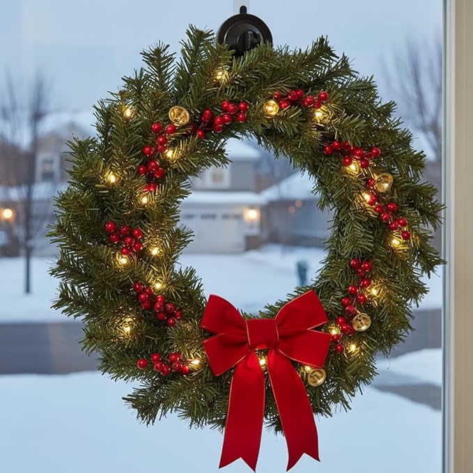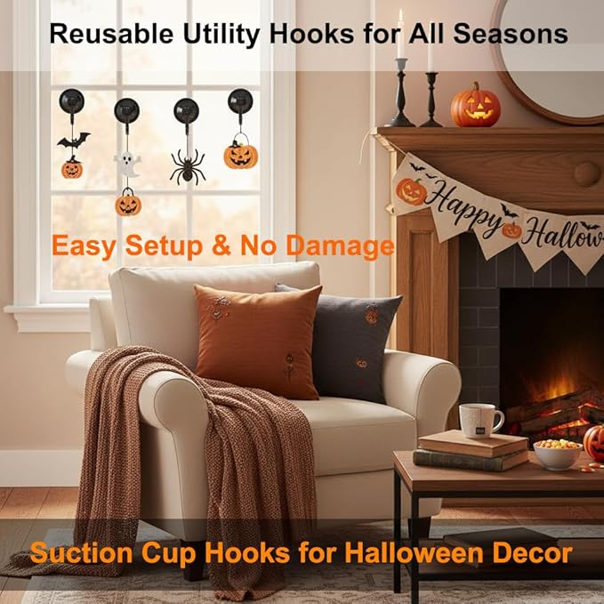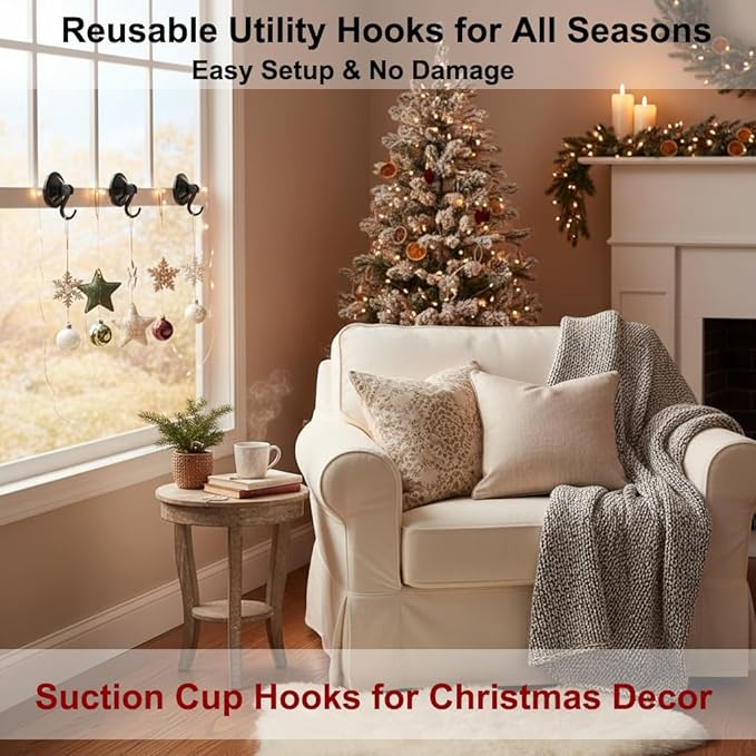 Suction Cup Hooks, Powerful Vacuum Wreath Hangers for Glass Door or Window, Set of 4, Black