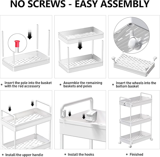- 【Easy Assembly & Customizable Layers】: Comes with clear instructions for quick, no-tool assembly in under 10 minutes. Adjustable layers allow customization from 1 to 3 tiers, adapting to your storage needs