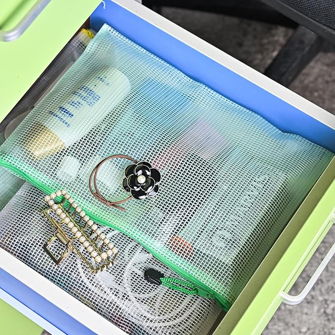 - Mesh pouches with translucent design. A solid PVC grid layout with moderate transparency could distinguish things in it easily, also protect your privacy at the same time