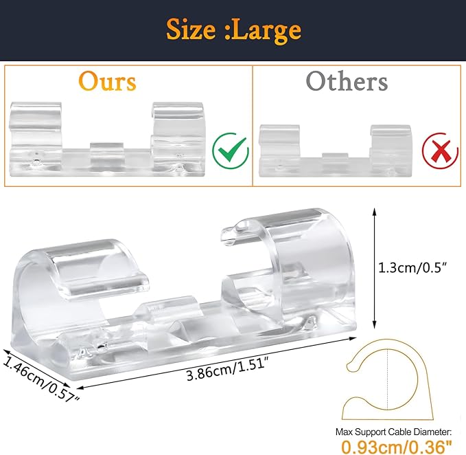 - 50 Pieces per Package: Maximum Support Cable Diameter: 10mm/0.4" of the Large size cable clips. Fit most wires, and space-saving.