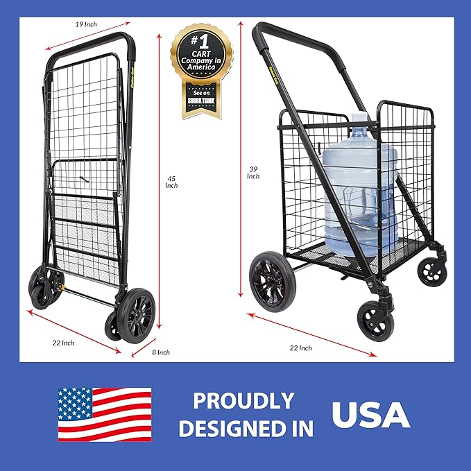 - TRIPS TO THE SUPERMARKET: carry all your food and produce from the market to your kitchen with this grocery cart. Great for trips to the farmers market. Ditch the plastic grocery bags, go with this grocery carrier with wheels.