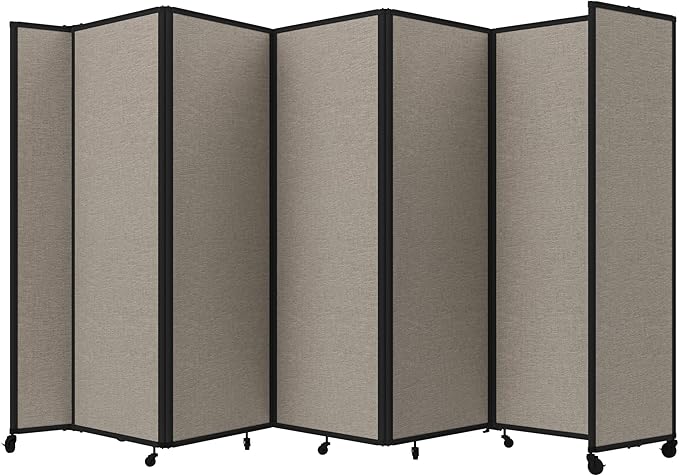 - THOUGHTFUL DESIGN: Made to roll around easily on wheels, this portable room separator also features locking casters to hold it in place. It comes with a trackable surface, sound-dampening fiberglass panels and a folding design for easy storage.