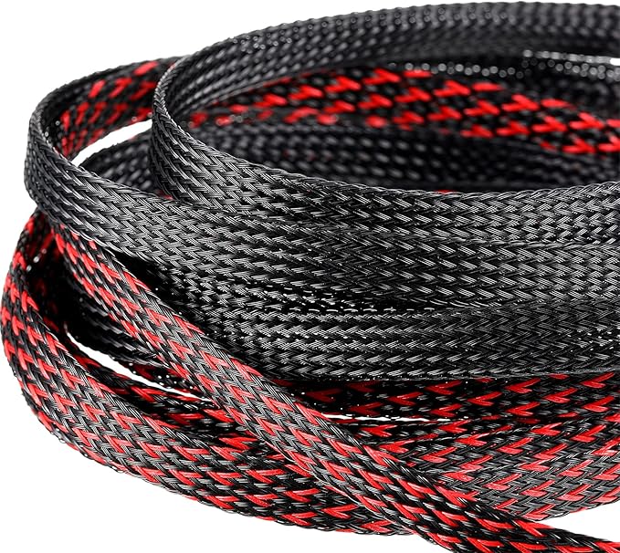 Xuniea 96ft Wire Loom Braided Cable Sleeve Covers Cord Management with 127 Pcs Tube Heat Shrinkable for Audio Video Cable Cord Protectors from Pets (1/2, 1/4, 3/8 Inch,Black and Red)