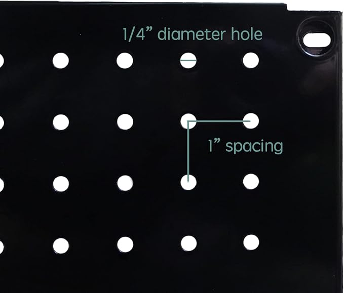 - Accept 1/4" rund pegs: Features standard 1" center spacing and 1/4" diameter holes to fit most standard 1/4" round pegboard hooks.
