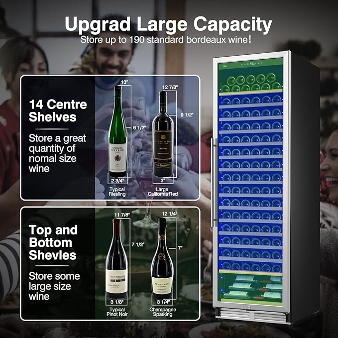 Upgraded 24 Inch Wine Cooler Refrigerator, 190 Bottles Wine Fridge with Professional Temperature Control System, Freestanding or Built-in installation, Quiet Operation