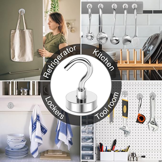 - 【Premium Magnetic Hooks】- Ni+Cu+Ni Triple Layer nickel coating greatly reinforces corrosion resistance. The best coating available, which provides a shiny and rust resistant coated steel cup provides protection for the strong metal magnetic hooks and helps to prevent chipping or cracking, Safe to Use!