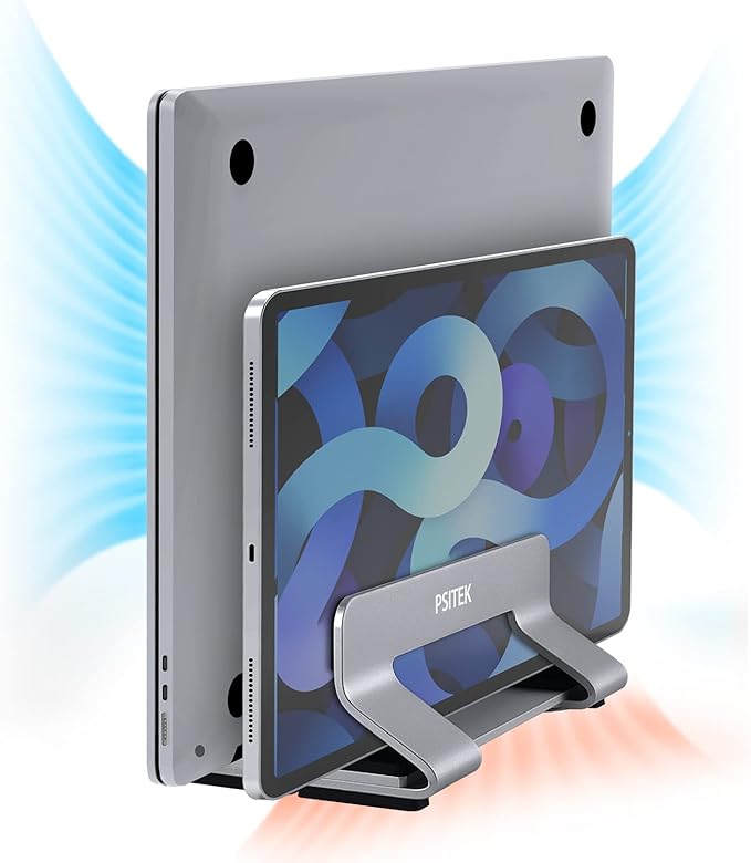 - Space-Saving and Organized: Store your laptop or MacBook vertically with the Psitek Aluminum Dual Vertical Laptop Stand Dock Holder to free up desk space and keep your workspace organized.