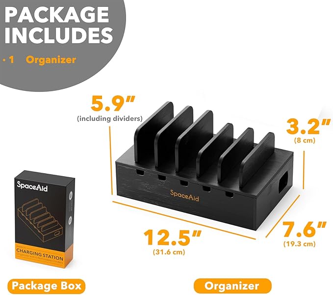 - ORGANIZED AND BEAUTIFUL - Make your office desk neat and organized with bamboo charging station; The organizer is designed for your multiple devices storage organization; SIZE: 12.5"L x 7.6"W x 5.9"H