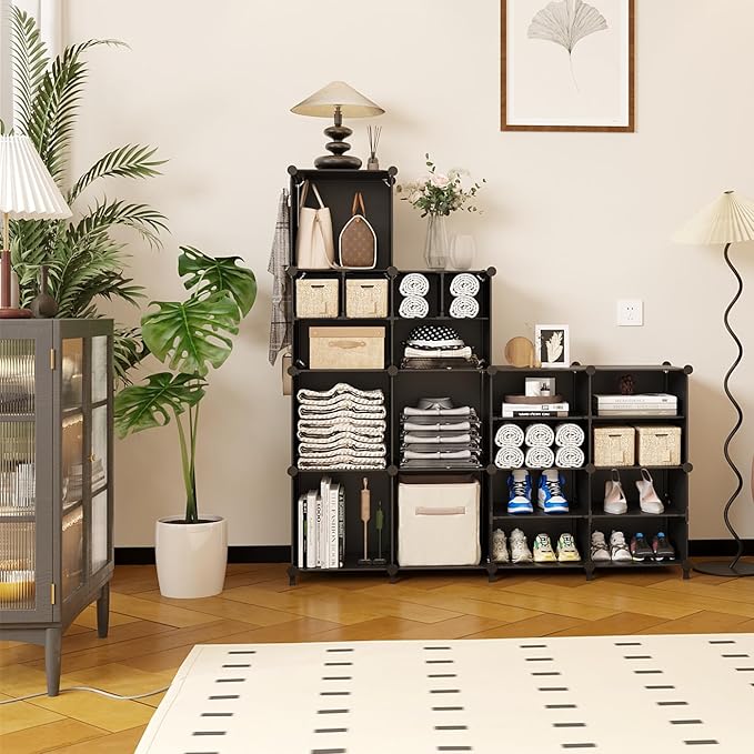 AWTATOS Cube Storage Closet Organizer Storage 12 Cube Shelves, Large and Small Cubes, DIY Portable Closet Clothes Storage Shelfs for Home, Bedroom, Black