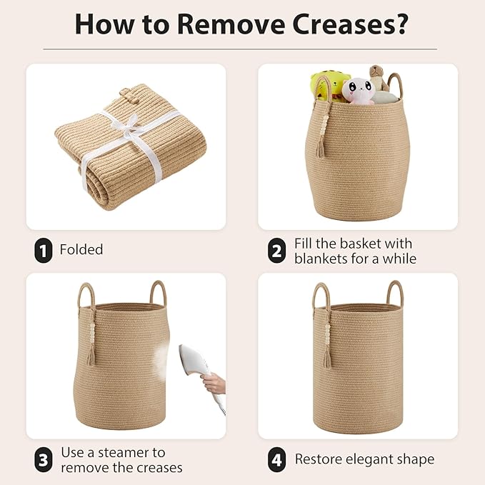 - ❤【Multipurpose Woven Basket】This laundry basket comes with a wooden bead tassel, making it suitable for decorating boho or farmhouse style homes.Collapsable baskets can be used not only for storage but also as decoration, anywhere in the home. Make your life more organized. You can put it in the living room, bedroom, laundry, baby room or dorm. This cute basket is also the perfect choice for a beautiful and practical Christmas gift.