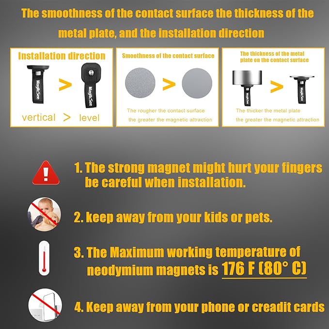 - Strong Magnetic Hooks: Design includes 8 magnets with more powerful magnetic, the Heavy-duty magnetic hooks feature strong rubber-coated magnet and adjustable strap that provide a secure hold on metal surface. Easy installation without drilling.