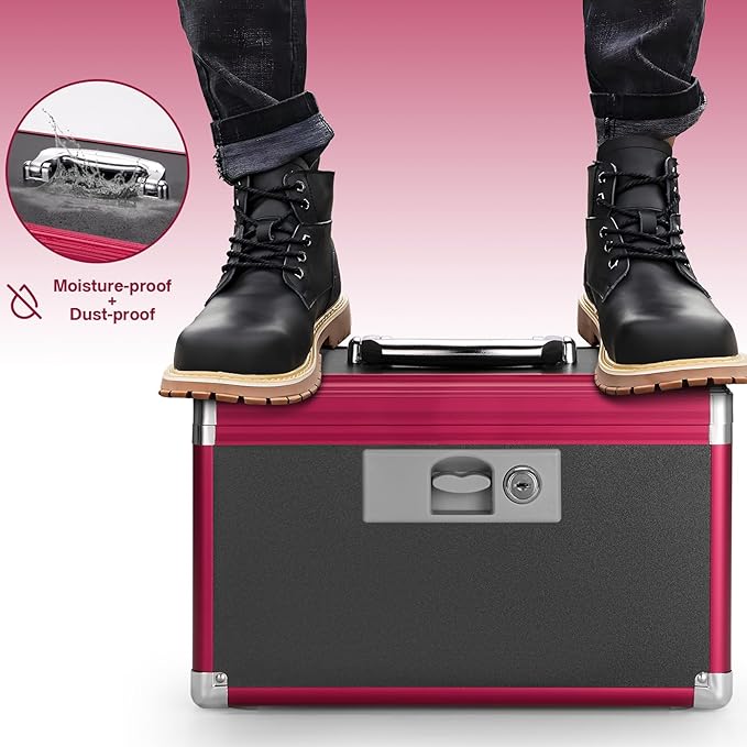 - STURDY AND DURABLE: Made of high-quality aluminum alloy and MDF, detachable plastic tray, our lockable drugs storage box is constructed with 4 steel corners, aluminum reinforcement, and an extra strong key lock to ensure your materials are safe