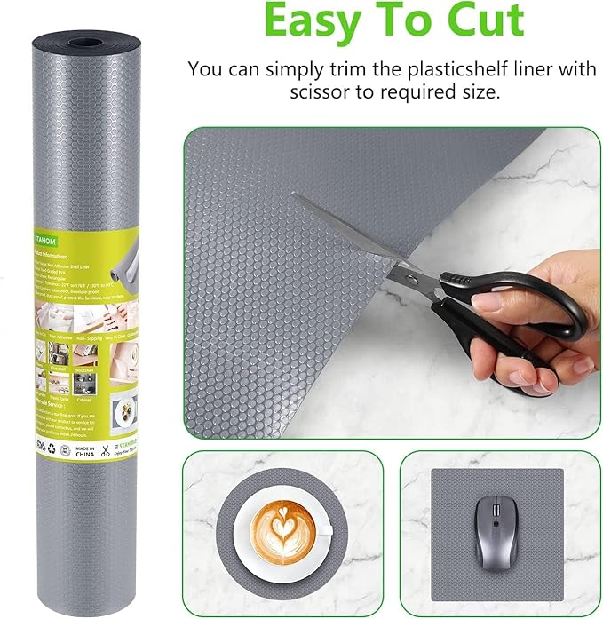 - 🎄【MULTIFUNCTIONAL LINER】🎄The shelf liners can not only be used as a kitchen liner to ensure the clean of the home, but also as a refrigerator mat to keep food and fruits fresh. Various Usage: Cabinet mat, drawer mat, desk mat, table mat, shelf liner, countertop.