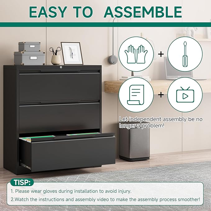 - ▶【100% SATISFACTION】Office lateral file cabinets takes 30 minutes to assemble,we provide clear and detailed numbered parts and installation instructions, installation video. If you encounter problems with installation or if the locking file cabinet 3 drawer arrives damaged, scratched, missing parts, please feel free to contact us and our customer service team will provide you with a satisfactory solution within 24 hours.