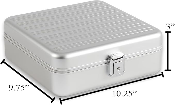 - Rugged Shell with Simple Care: A sturdy aluminum body and secure front latch help protect your watches from bumps and pressure when you’re on the move. Inside, the quilted lining and plush cushions cradle crystals and cases, while the flat base keeps the case stable wherever you set it down. Maintenance is easy; wipe the exterior with a soft, dry cloth, lightly dust the interior, and avoid harsh cleaners to preserve the clean silver finish.