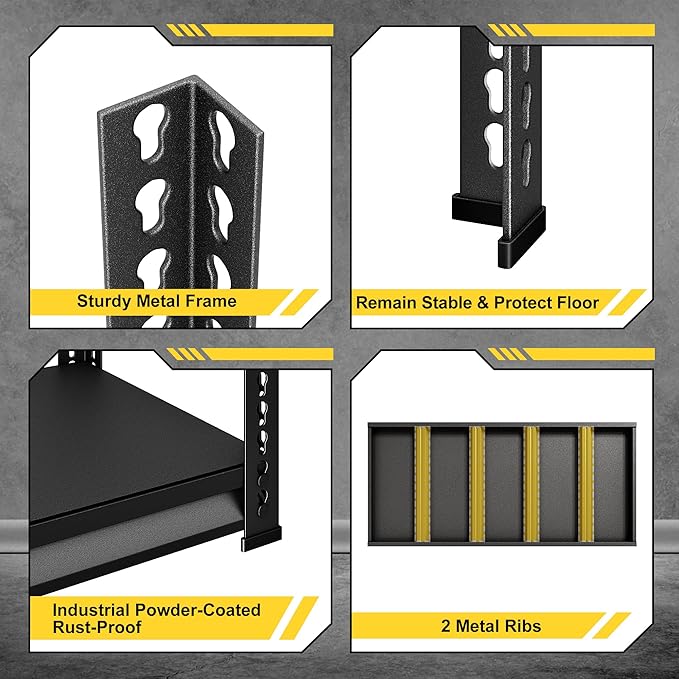 - 【Gerat Storage Capacity】Instead of flimsy wires and wooden board,our garage shelving is made of all metal shelves,thickened beams and walled uprights. What we present to you is an enhanced structures complete the unit with 3000 lbs bearing capacity.