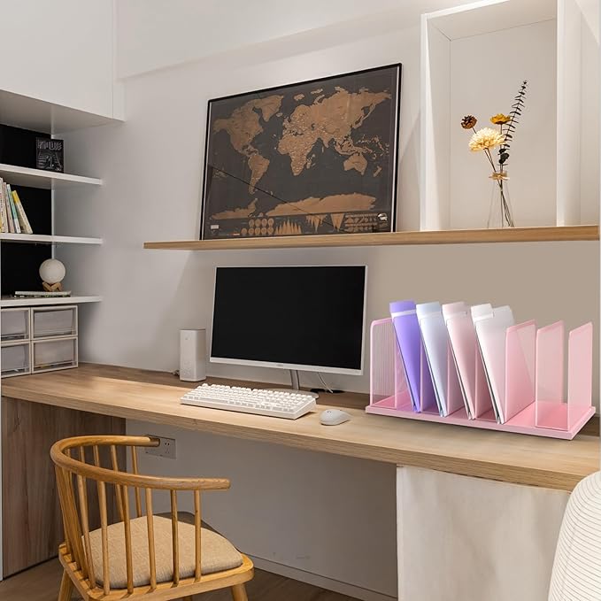 Kuntine.B Desk File Organizer Upright Mesh Desktop Organizer File Sorter Office Organization File Holder for Home, Office & Classroom (Pink, 1 Pack 7-Section)