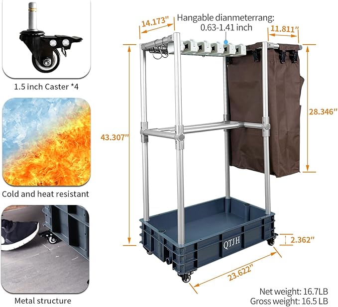 - 【Durable Material】Made of high-quality aluminum, this cleaning cart is durable, rust-resistant, and a reliable assistant for your cleaning tasks