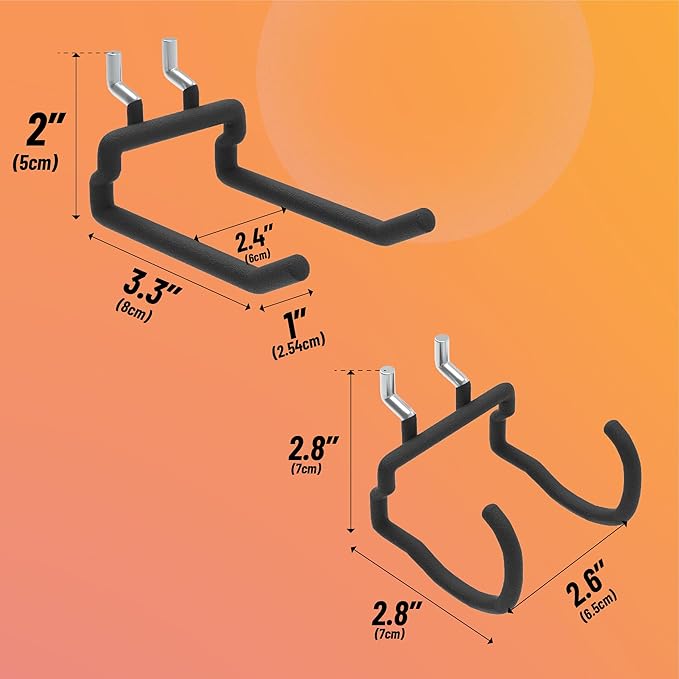 - Premium-grade Material: Our pegboard tool hooks are equipped with thick steel that prevent the hooks from deforming, and vinyl-coated finish protects your valuable items. Each pegboard tool holder can hold up to 20LB.