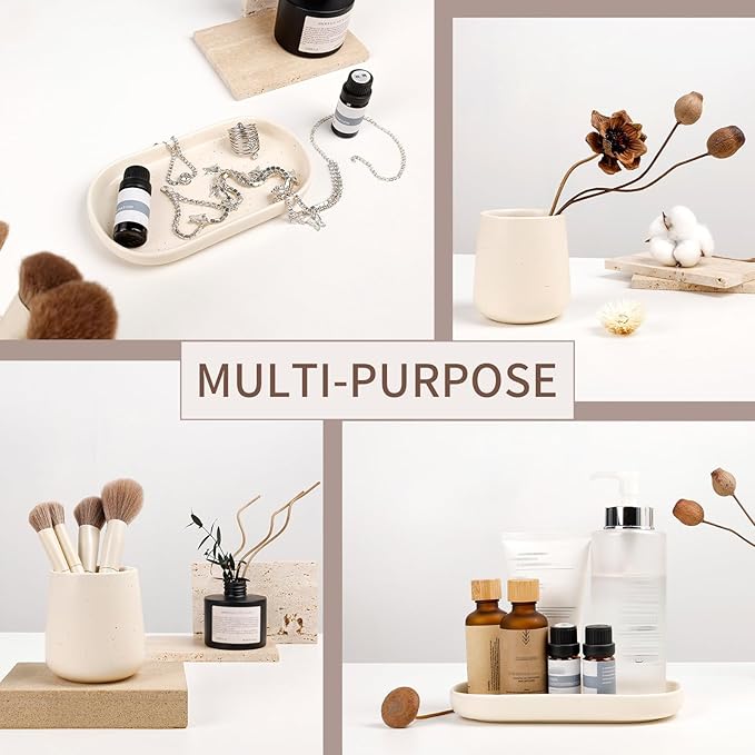 - Bathroom Sets Accessories: 3 pieces bathroom accessory set includes a soap dispenser pump, a toothbrush holder, 1 tray. Perfect for storing your toiletries and keep your bathroom counter fully organized neatly