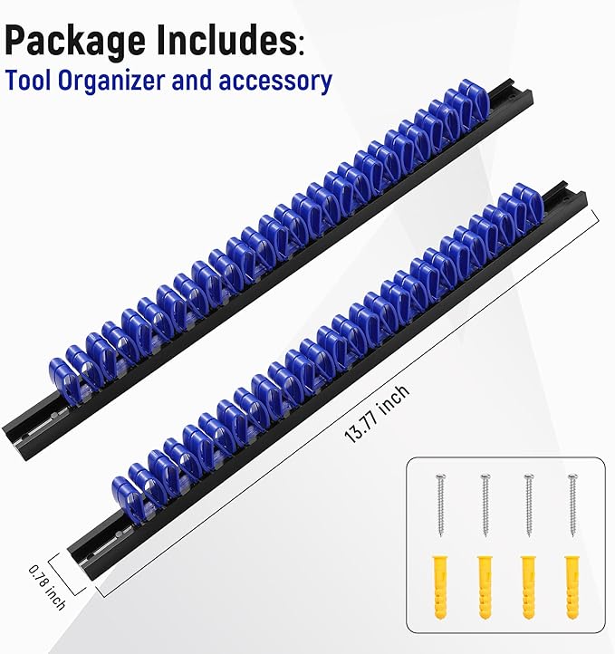 2 Pack Wall-Mounted Screwdriver Organizers with Screws - Heavy-Duty ABS Plastic Tool Holder for Screwdrivers, Wrenches, Piers - Garage Workshop Storage (Blue,2 PCS)