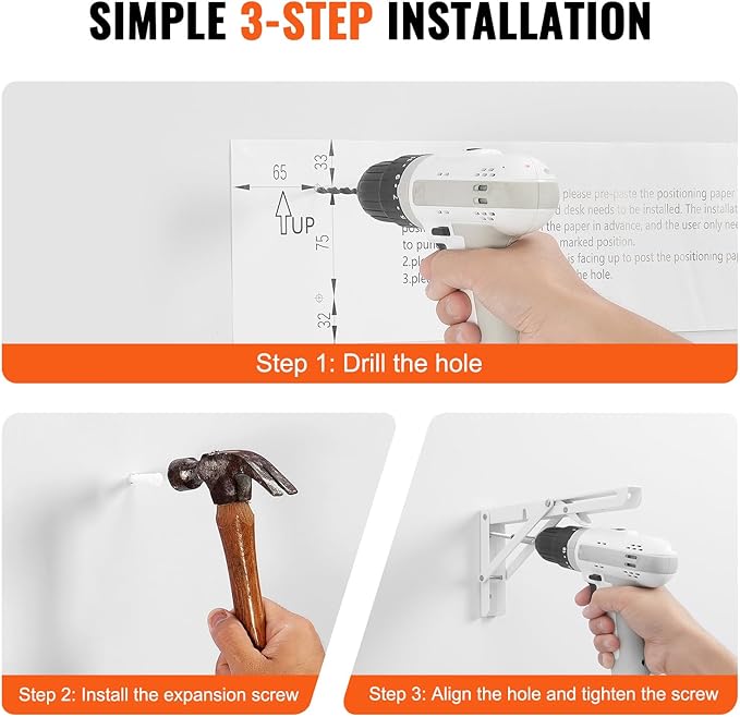 - Easy Installation: Installing our wall mount folding table is a breeze with included installation positioning paper. Pre-marked installation positions on the template allow for quick hole drilling, ensuring a convenient installation process.