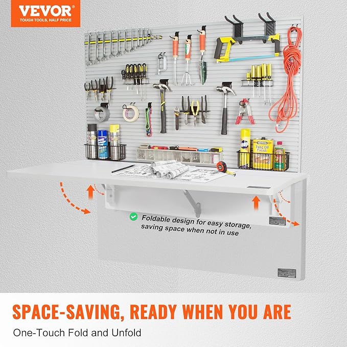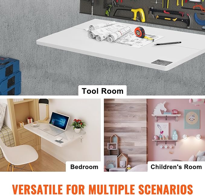 - Versatile for Any Space: Whether it's your garage, workshop, tool room, home office, or kitchen, this floating desk fits right in. The wall folding table helps you make the most of your space, keeping everything organized and efficient.