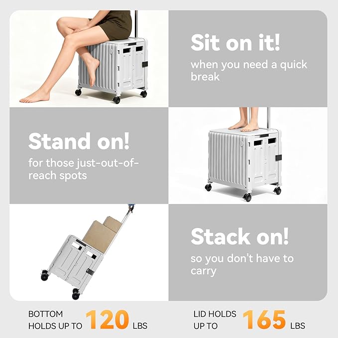 - Crate on Wheels with Handle for Easy Transport: Our crate on wheels with handle is perfect for heavy-duty tasks. With a 150 lbs weight capacity, it’s ideal for carrying groceries, laundry, or classroom materials. The rust-resistant frame ensures long-lasting use, while the ergonomic handle makes it easy to maneuver in any setting.
