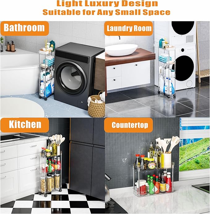 - 【Multifunctional bathroom shelf】The storage cart can be used as laundry room organization and storage for between washer and dryer storage,dorm room storage,laundry room organization,bathroom storage cabinet,makeup shelf, utility cart,small snack cart to keep your space organized