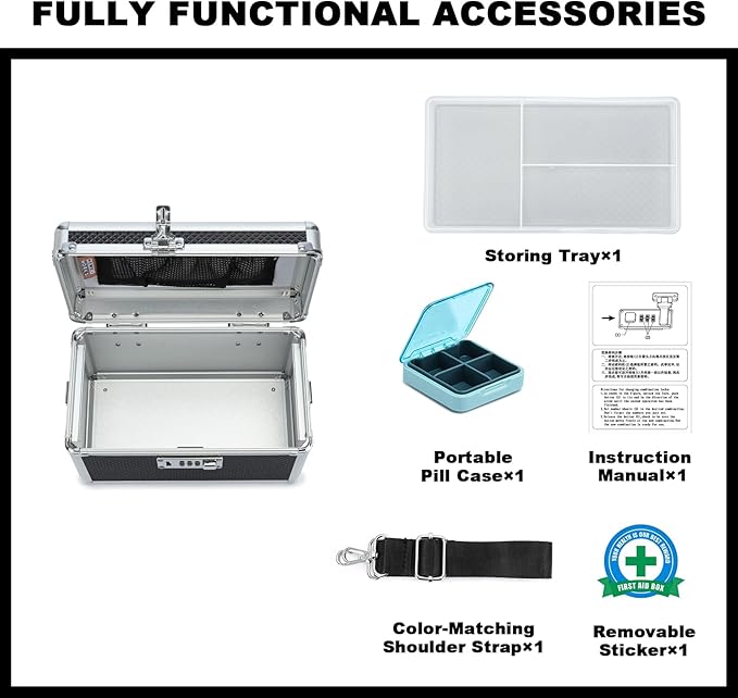 - 【REMOVABLE ACCESSORIES FOR USER-FRIENDLY APPLICATION】 With a removable First Aid sticker, top tray, and adjustable shoulder strap, users can customize the storage box to suit their needs. It can be used to securely store cash, jewelry, cosmetics, ID documents, and other valuables, making it versatile for various venues. It also makes a perfect gift for family, friends, or employees, expressing your care and thoughtfulness. We hope you enjoy organizing and securely locking away your most cherished items.