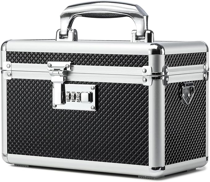 Storage Lock Box with Combination code, Lockable Medicine Storage Case, Empty First Aid Box, Security Lock Box, Multipurpose Lockbox for Home and Outdoor Use (Black, Small)