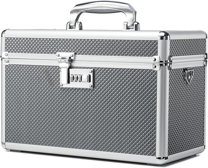 Storage Lock Box with Combination code, Lockable Medicine Storage Case, Empty First Aid Box, Security Lock Box, Multipurpose Lockbox for Home and Outdoor Use (Gray, Large)