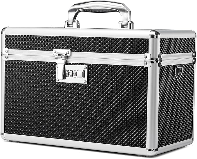 Storage Lock Box with Combination code, Lockable Medicine Storage Case, Empty First Aid Box, Security Lock Box, Multipurpose Lockbox for Home and Outdoor Use (Black, Large)