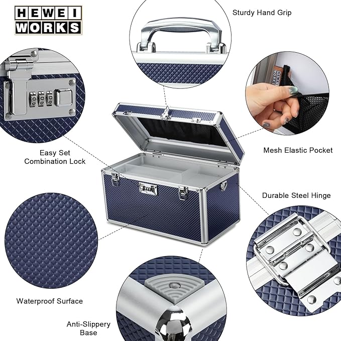 Storage Lock Box with Combination code, Lockable Medicine Storage Case, Empty First Aid Box, Security Lock Box, Multipurpose Lockbox for Home and Outdoor Use (Blue, X-Large)