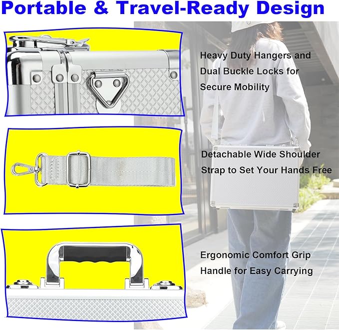 - **Portable & Travel-Ready Design** The ergonomic comfort grip handle ensure easy carrying,and the detachable, shoulder strap (color-matched for style) set your hands free. Dual reinforced buckle locks and shock-absorbent egg-crate foam secure cards during transit, this card storage box makes sharing and trading with more confidence.