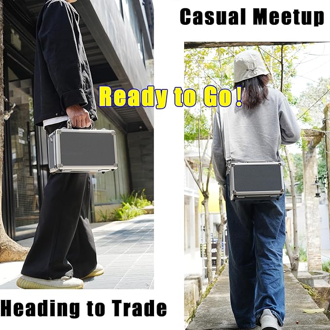 - **Premium Protection & Durability** Crafted with premium materials and precision engineering,rugged aluminum alloy frame, reinforced MDF panels, shock-absorbent EVA foam lining create a fortress card protection case on your collection against impacts, moisture, dust. Dual key-lock closures and heavy-duty buckles , built to preserve cards in pristine condition for years.