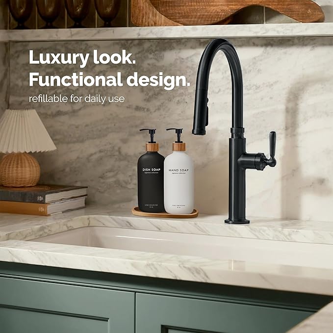 - BUILT TO PERFORM – Each dispenser is topped with a natural bamboo pump that’s as functional as it is elegant. Smooth to use, moisture-resistant, and thoughtfully designed to complement any modern kitchen or bathroom with a warm, organic touch.