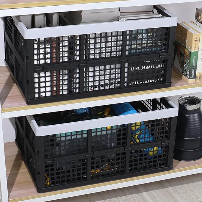 66 L Extra Large Stackable Storage Crate, Set of 4 Plastic Collapsible Crates