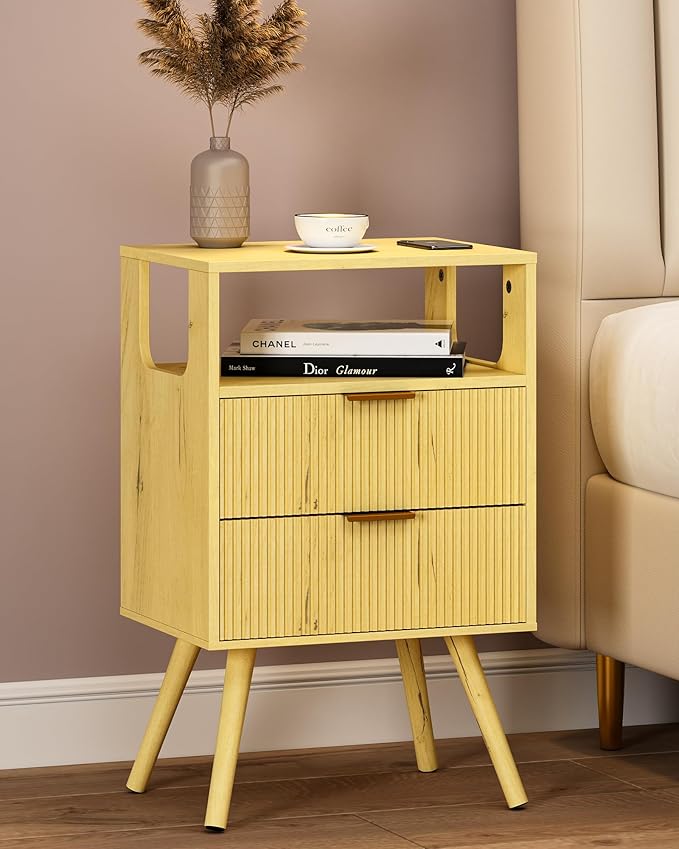 Nightstand,Modern Bedside Table with 2 Storage Drawer and Open Wood Shelf, for Bedroom and Small Spaces,Night Stand with Solid Wood Legs, Yellow Oak