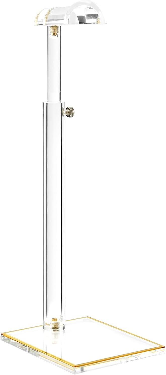 - 8.5MM Non-Slip Gold Trim Base: Crafted from durable 8.5mm-thick transparent acrylic (5"-6" base size), this sturdy platform boosts load capacity by 30%. Non-slip silicone pads allow the bag rack to be placed on glass counter / wooden wardrobe without slipping or shifting, while the gold-edge detailing adds a luxurious touch to elevate your display