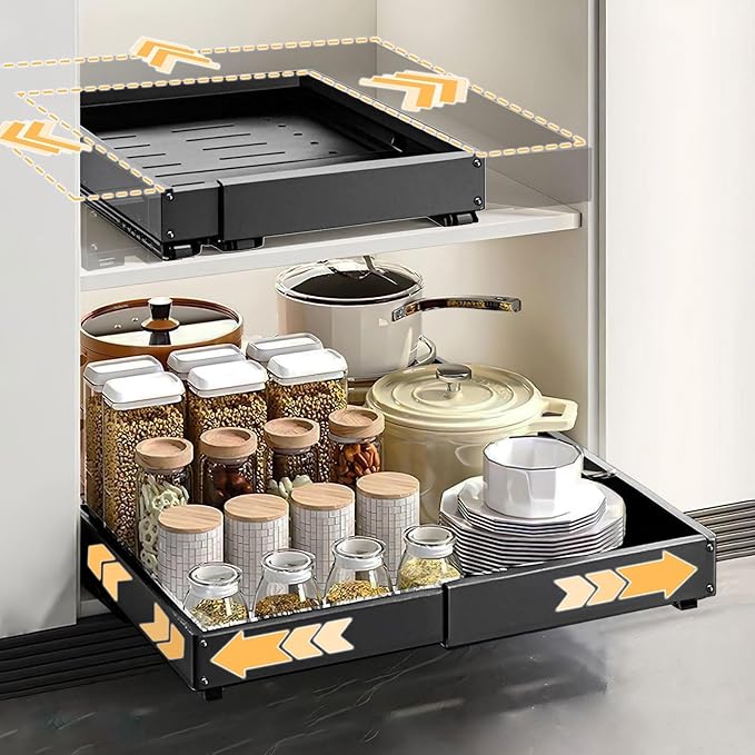 - Adjustable Width and Depth: Fit for sliding cabinet organizer with width range from 12" to 19" depth range from 16.3"-21.6"