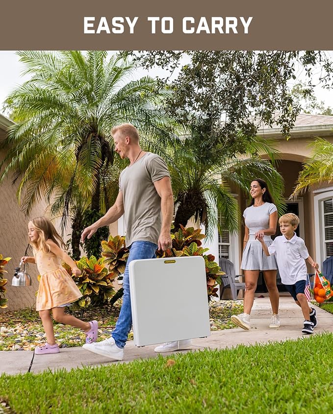 - Indoor & Outdoor Use: This plastic folding table is a partner for social gatherings, waterproof and smooth table top helps you save a lot of time cleaning it. Versatile use makes it suitable as a dining or game table for outdoor cookouts or birthday parties, or as a serving or display table for indoor events