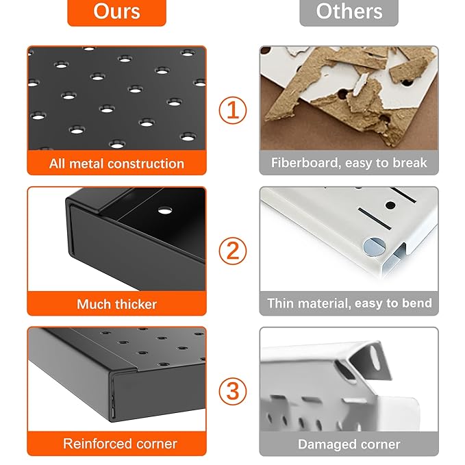 - Built to Last: Pegboard panels are made of high quality steel with powder coated finish, sturdy, scratch resistant and easy to clean. Will last forever, never warp and deteriorate. The metal pegboard will hold the weight of all your tools