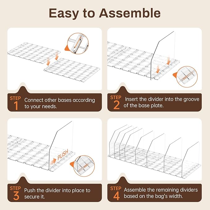 - Package Included: The purse organizer package includes 4 bases and 16 dividers. Suitable for storing purses, paper bags, clutch bags, small bags, as well as organizing child's books, files in the office, and various other items, effectively saving space in your home.