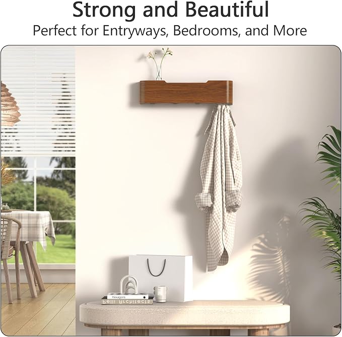 - 【Solid Wood Shelf & Entryway Organizer】The coat hanger wall mount is made of high quality wood and hidden metal hooks,the partition can hold aromatherapy,potted plants and other decorations. The bottom can hang coats,bath towels,umbrellas,keys and other daily necessities,combining decorative,aesthetic and storage,making your home neat and orderly