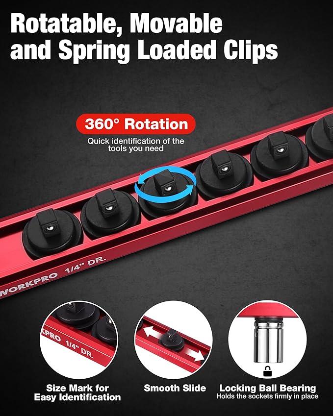 - Easily Add or Remove Clips: Push the button on the rail and move the clips, easily add or remove clips as needed, helping to optimize tool storage capacity and making it an ideal tool organizer for toolbox drawer
